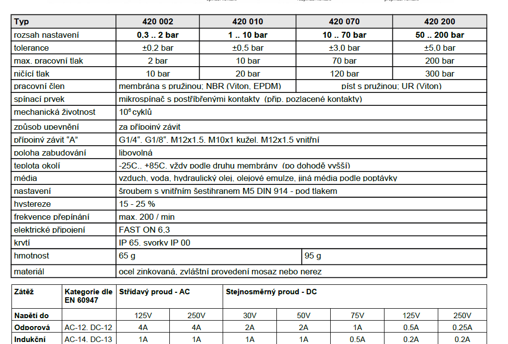 Tlakový spínač BHV 412.010.1 1-10 bar