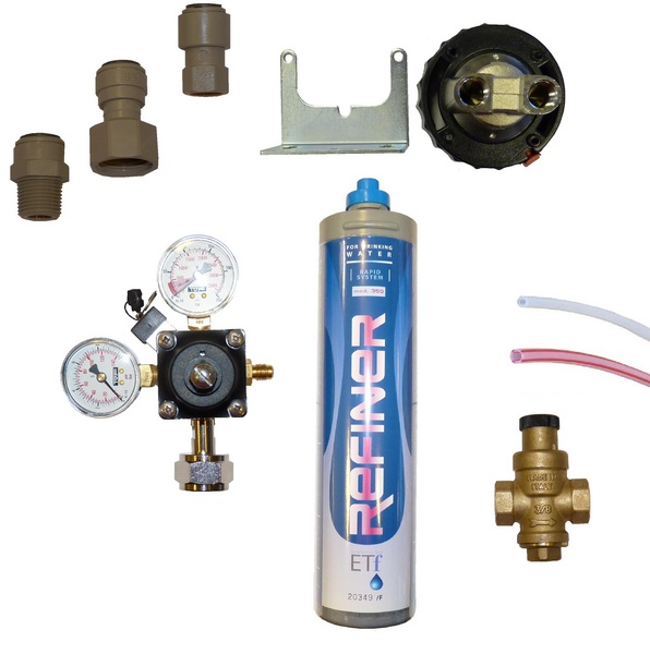 Sada obsahuje kompletní potřebný materiál pro připojení a provoz výrobníku sodové vody.